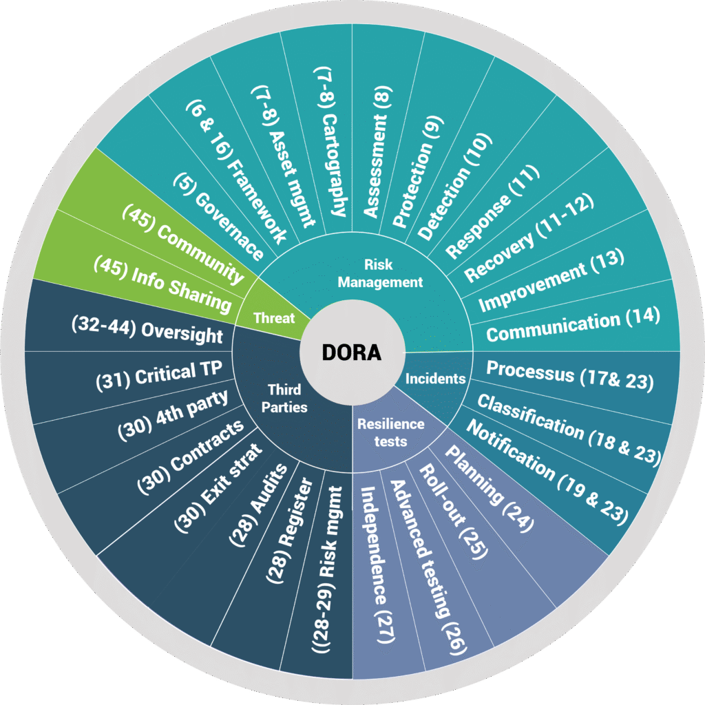 O DORA impõe cinco pilares fundamentais para garantir a resiliência operacional digital: