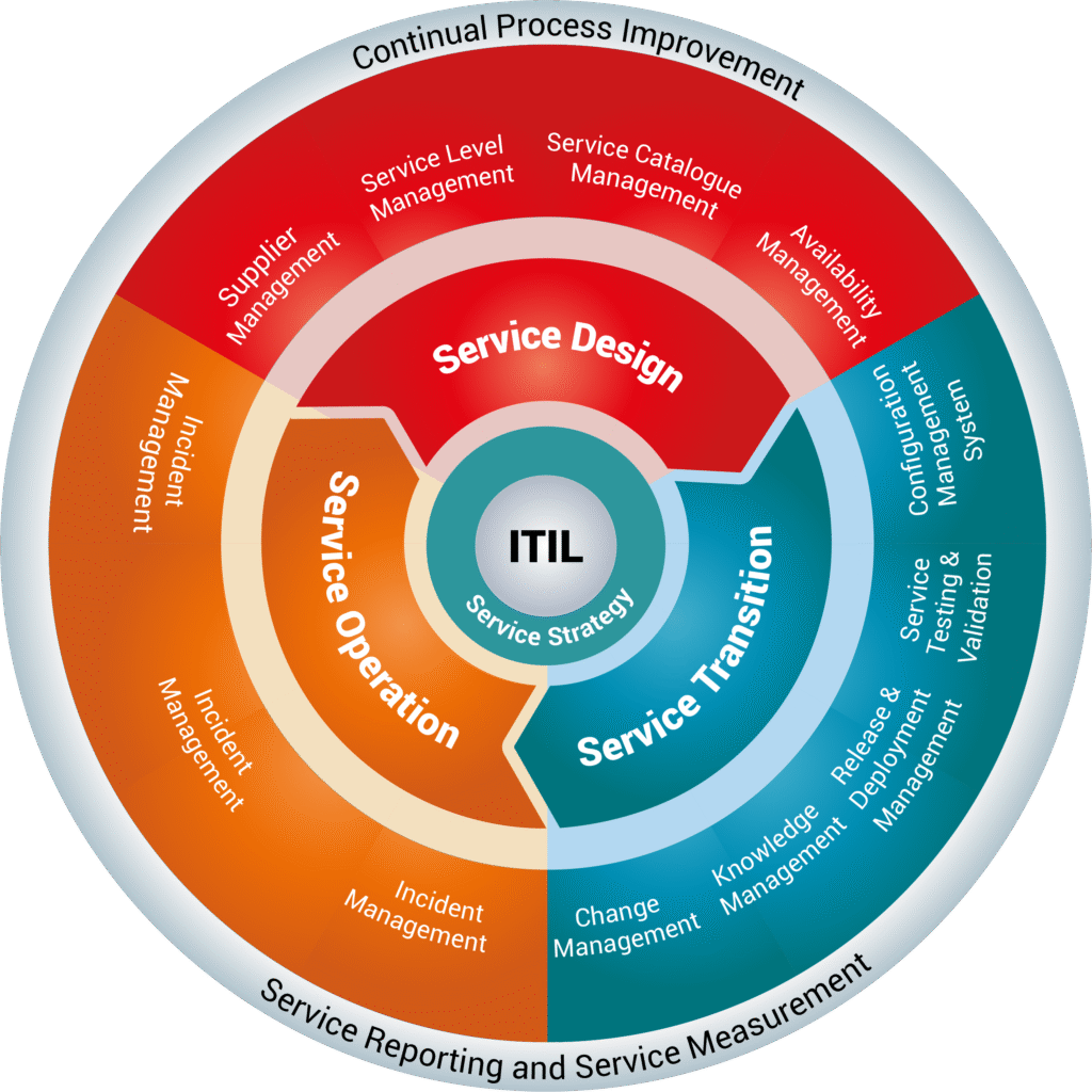 O ITIL é amplamente utilizado para estruturar processos de suporte e entrega de serviços, incluindo incidentes, mudanças, problemas e níveis de serviço.